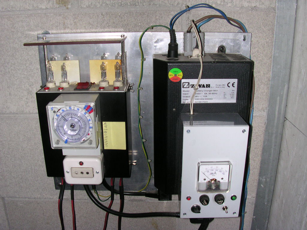 Este cargador està "integrado" por un "float charger" (el aparato con el miliamperìmetro instalado encima de su