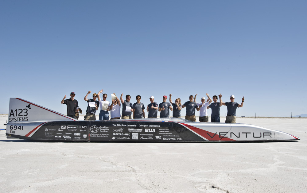 Un equip d'estudiants d'enginyeria de la Universitat Estatal d'Ohio va empènyer el rècord de velocitat elèctric per sobre dels màgics 500 km/h, a les emblemàtiques salines de Bonneville, Utah.