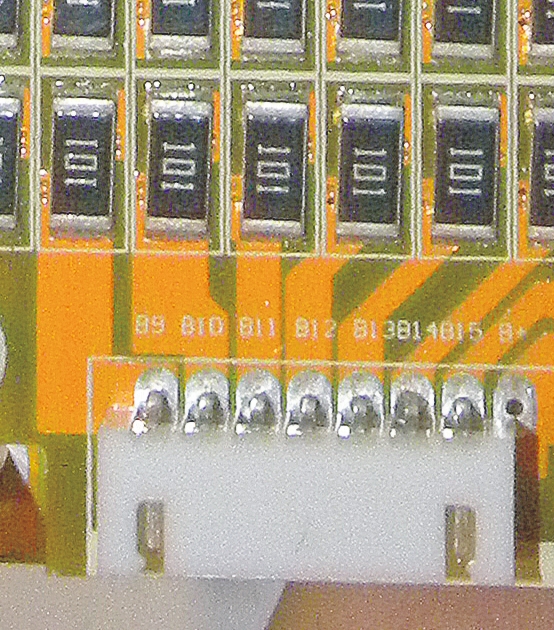 Connector blanc inferior 8 pins: B-: negatiu general de la bateria, no hi ha foto de la placa, segurament inhabilitat. (-cell1+) cable B1 a connector entre les cel·les (-cell2+) B2 (-cell3+) B3 (-cell4+) B4 (-cell5+) B5 (-cell6+) B6 (-cell7+) B7 (-cell8+) B8. total 8 cables+1 inhabilitat.