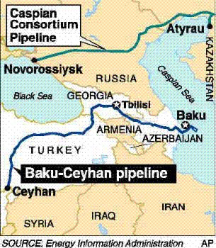 Azerbaiyán y Georgia (ambos limitan fronteras), búnkeres del eje USA-UE, son parte del corredor energético en disputa que desató el conflicto del Cáucaso. Azerbaiyán, a su vez, limita con Armenia, un enclave ruso, que también comparte fronteras con Turquía (aliado estratégico de EEUU) e Irán (aliado estratégico de Rusia).