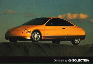 The original Sunrise was designed by Solectria Corp. using the Hypercar principles of Amory Lovins. It achieved remarkable efficiency and range, through the use of lightweight construction, innovative design, and superb aerodynamics. Unfortunately, only a handful were produced before Solectria went out of business.