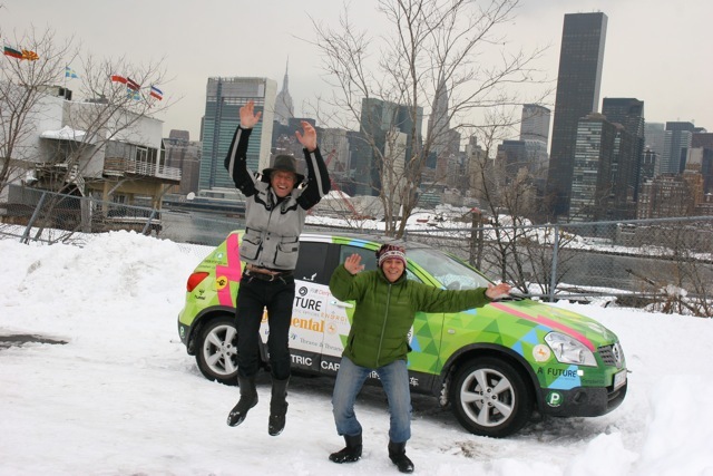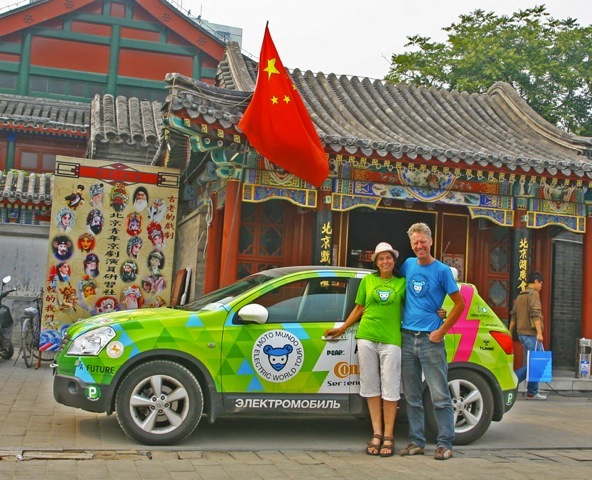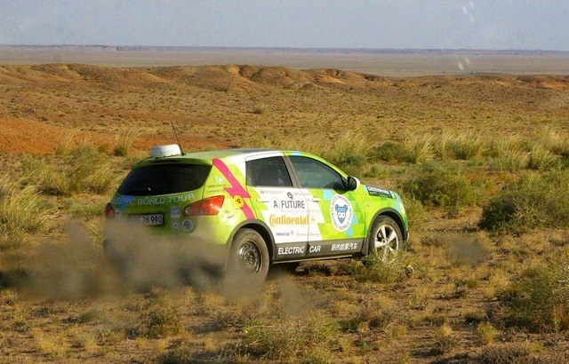 Nosaltres - els aventurers i escriptors danesa Nina Rasmussen i Tin Hjalte - Aspirem a ser el primer en conduir un cotxe elèctric real ronda el món. Es tracta d'un Nissan Qashqai elèctric de 5 places, 60 kW i 100% elèctric. Té un abast de 250 km i una velocitat màxima de 130 km / h. Es produeix a Dinamarca.