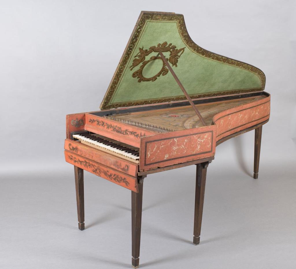 | Aquest clavicèmbal és una obra mestra de Carl Conrad Fleischer (1680-1721?), pertanyent a una important família de constructors de clavicèmbals establerts a Hamburg i actius entre els segles XVII i XVIII. Es conserven tres instruments seus, tots amb la roseta de pergamí característica de la família. La decoració és molt variada i complexa, amb motius florals, vegetals i animals. Prové de la col·lecció d'Orsina Baget de Folch, que es troba al Museu de la Música des dels seus inicis. L'instrument està restaurat estructuralment, però degut al seu disseny i antiguitat no podria resistir la tensió de les cordes. Així, tot i estar restaurat, no pot ni podrà mai sonar. Per això es va optar per una reconstrucció virtual: tensar i afinar totes les cordes, una per una, i enregistrar-les així, permetent al capdavall d'obtenir un joc de mostres complet. Hi ha però una qüestió evident: una corda d'un clavicèmbal no sona pas igual si és l'única tensada i afinada que si tota la resta també ho estan. Les altres cordes ressonen per simpatia, i la tensió sobre el cos de l'instrument també n'afecta el so. Per aquest motiu es va fer un treball previ sobre una reconstrucció d'un clavicèmbal Zell, sorgit del mateix taller que el Fleischer, enregistrant primer totes les notes d'una en una, amb la resta de les cordes destensades, i posteriorment, amb tot l'instrument afinat amb totes les cordes, per a obtenir un patró del canvi, patró que es va modelitzar informàticament i es va aplicar posteriorment a les mostres obtingudes del Fleischer del museu. | This harpsichord is a masterpiece by Carl Conrad Fleischer (1680-1721?), belonging to an important family of harpsichord builders established in Hamburg and active between the 17th and 18th centuries. Three of his instruments are preserved, all with the family's characteristic parchment rosette. The decoration is very varied and complex, with floral, plant and animal motifs. It comes from the collection of Orsina Baget de Folch, which has been in the Museu de la Música since its inception. The instrument has been structurally restored, but due to its design and age it could not withstand the tension of the strings. Thus, despite being restored, it cannot and will never be able to sound. For this reason, a virtual reconstruction was chosen: tensioning and tuning all the strings, one by one, and recording them in this way, ultimately allowing a complete set of samples to be obtained. There is, however, an obvious point: a harpsichord string does not sound the same if it is the only one tensioned and tuned as if all the others are also. The other strings resonate in sympathy, and the tension on the body of the instrument also affects its sound. For this reason, preliminary work was done on a reconstruction of a Zell harpsichord, which emerged from the same workshop as the Fleischer, first recording all the notes one by one, with the rest of the strings untensioned, and later, with the entire instrument tuned with all the strings, to obtain a pattern of change, a pattern that was modeled computer-aided and subsequently applied to the samples obtained from the Fleischer in the museum. |